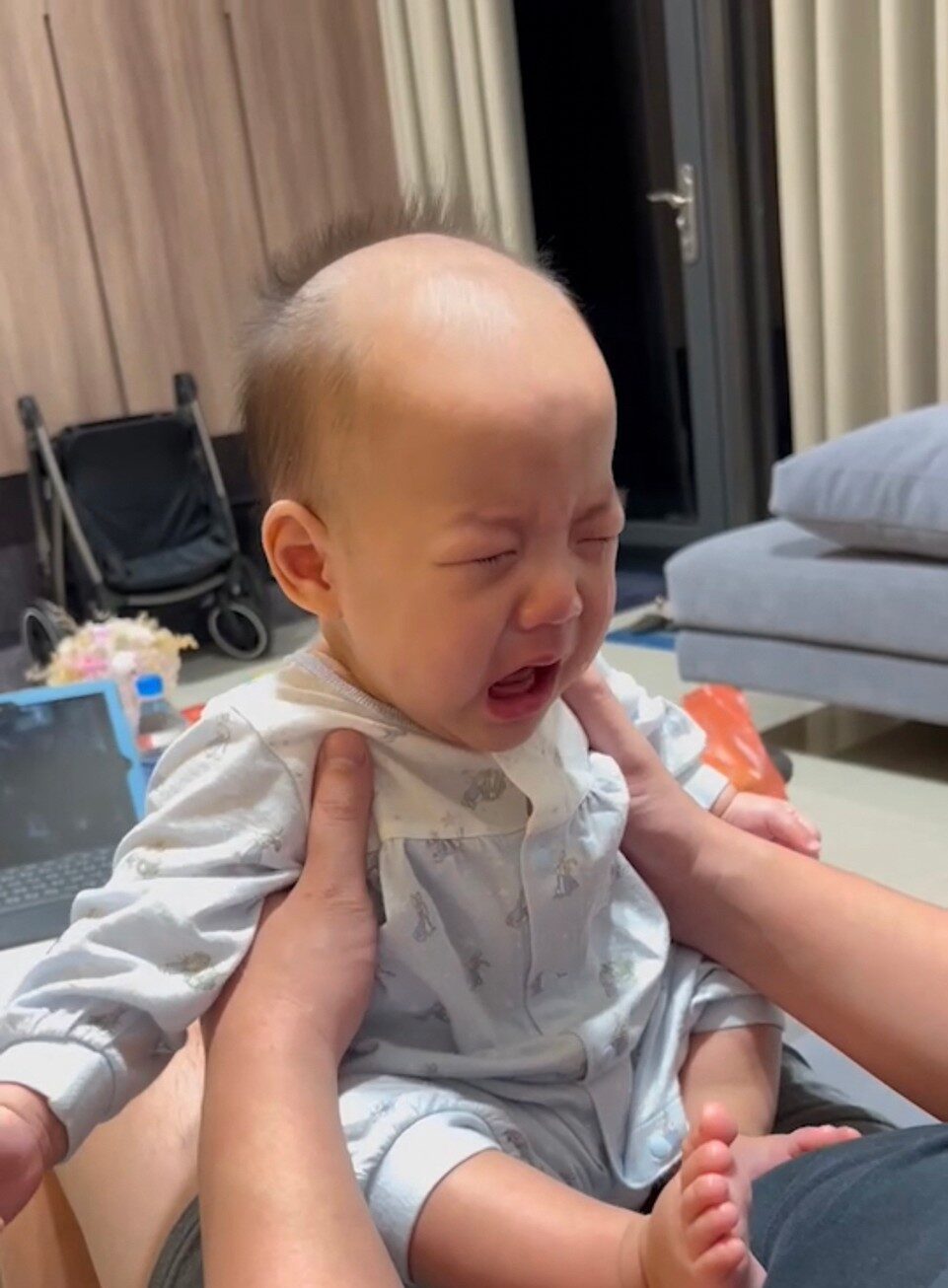 平常睡覺我們家是不哄睡跟抱睡 不過遇到這樣我們會多抱一下等寶寶冷靜一點再放上床